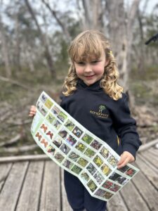 Each term, students take part in excursions on Country, exploring different parts of our local environment. With every visit, they notice something new such as fresh plant growth, active wildlife, cooler air, or the quiet calm of winter. Over time, children begin to recognise patterns and changes, building a stronger understanding of the natural world. Children are supported with resources from our local landscape board to help identify plants, scats, and wildlife, building their knowledge and confidence in the field. At times, local Elders join us to share knowledge and stories, helping students learn how the Boandik people walked on and lived off the land.